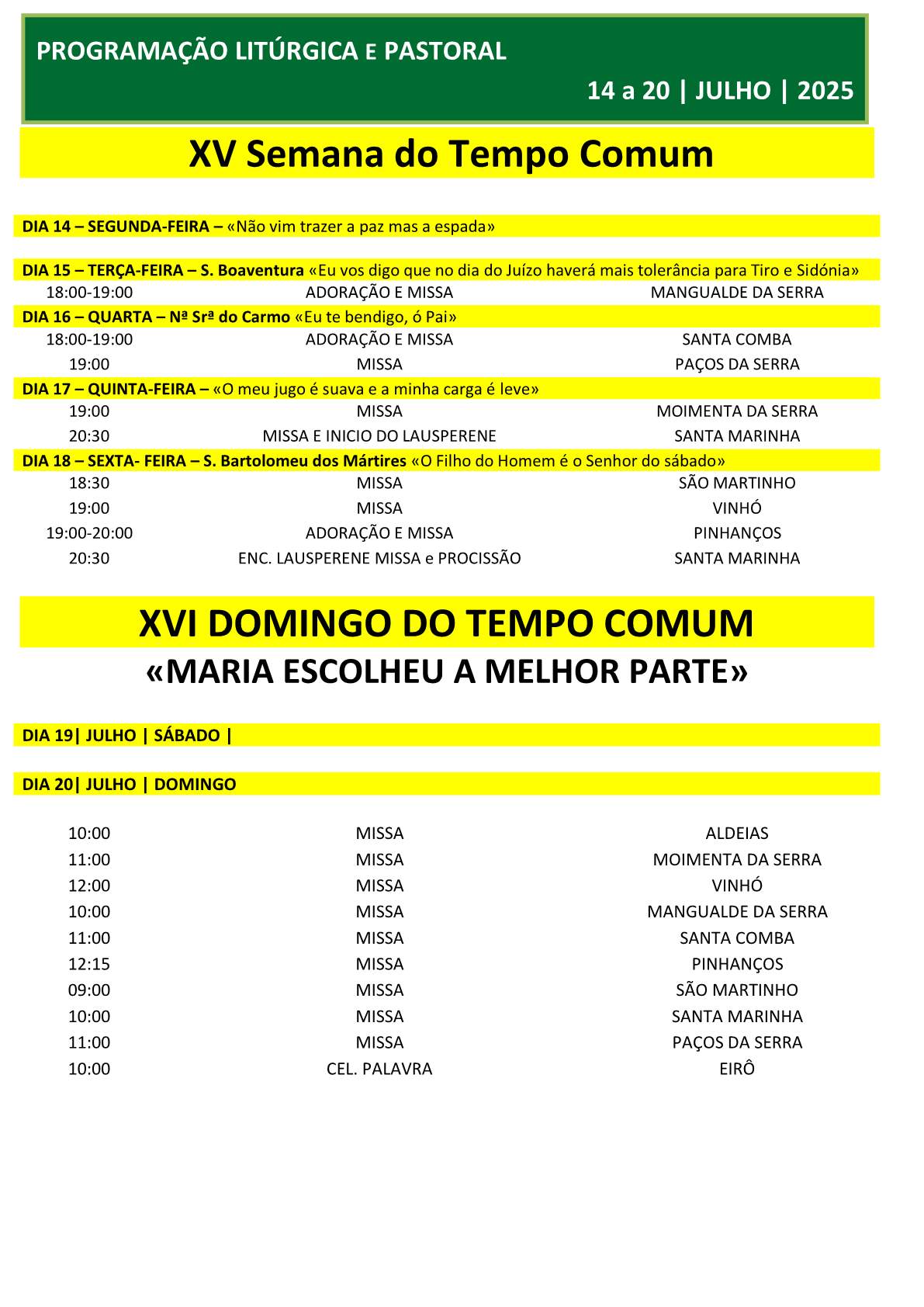 Agenda 14 a 20 | Julho 2025 Detalhes Categoria: Agenda Publicado em quinta, 17 julho 2025 22:55 Escrito por Paróquia de Santa Marinha Visualizações: 221 Anterior Seguinte