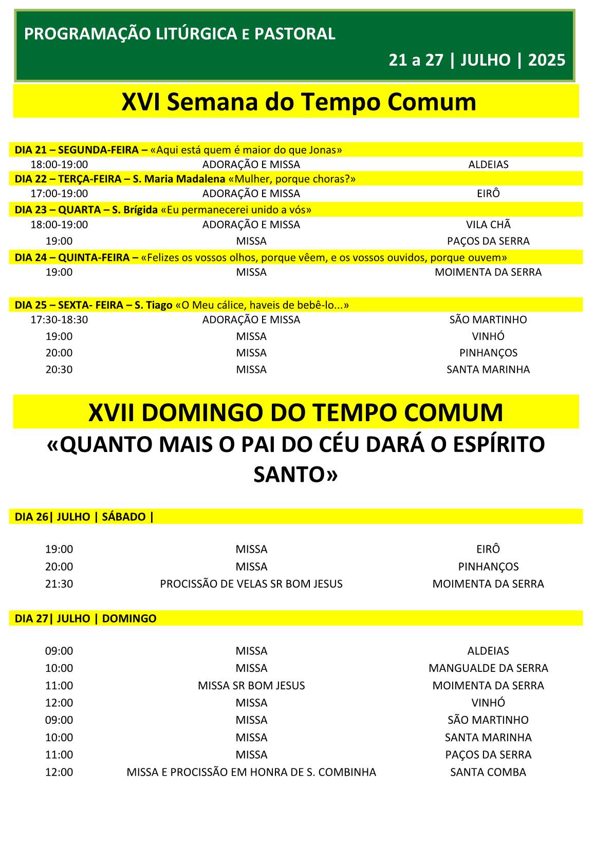 Agenda 21 a 27 | Julho 2025 Detalhes Categoria: Agenda Publicado em domingo, 20 julho 2025 21:36 Escrito por Paróquia de Santa Marinha Visualizações: 300 Anterior Seguinte