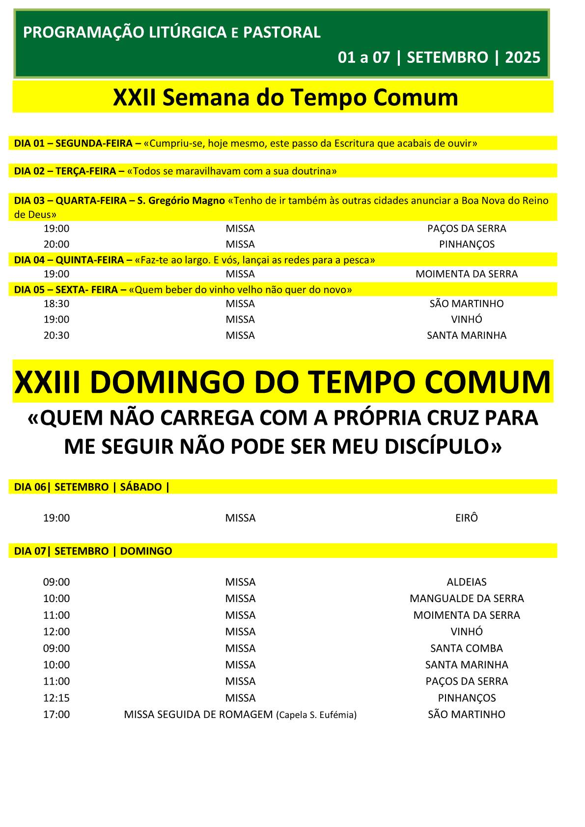 Agenda 01 a 07 | Setembro 2025 Detalhes Categoria: Agenda Publicado em terça, 02 setembro 2025 21:44 Escrito por Paróquia de Santa Marinha Visualizações: 208 Anterior Seguinte