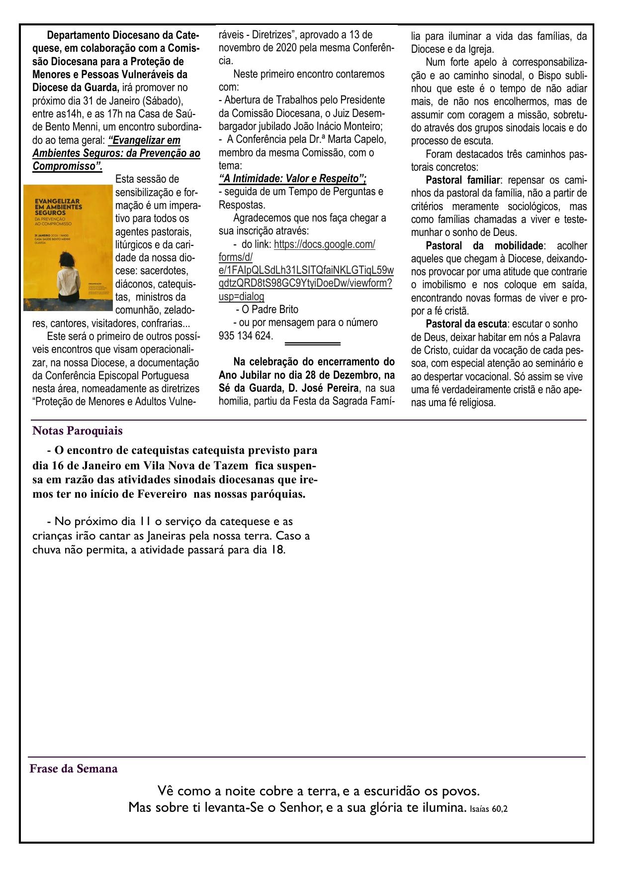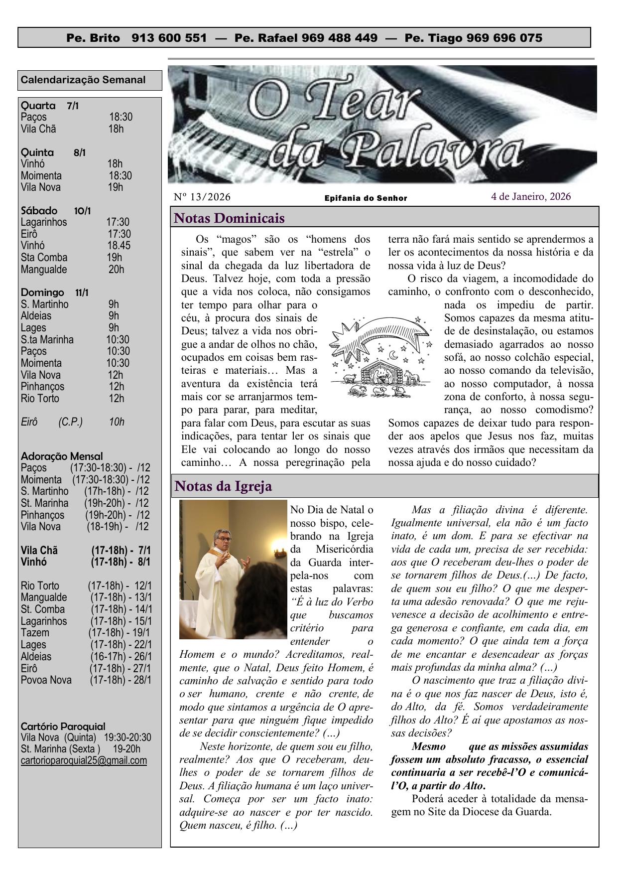 Agenda 07 a 11 | Janeiro 2026 Detalhes Categoria: Agenda Publicado em sábado, 03 janeiro 2026 09:45 Escrito por Paróquia de Santa Marinha Visualizações: 68 Anterior Seguinte