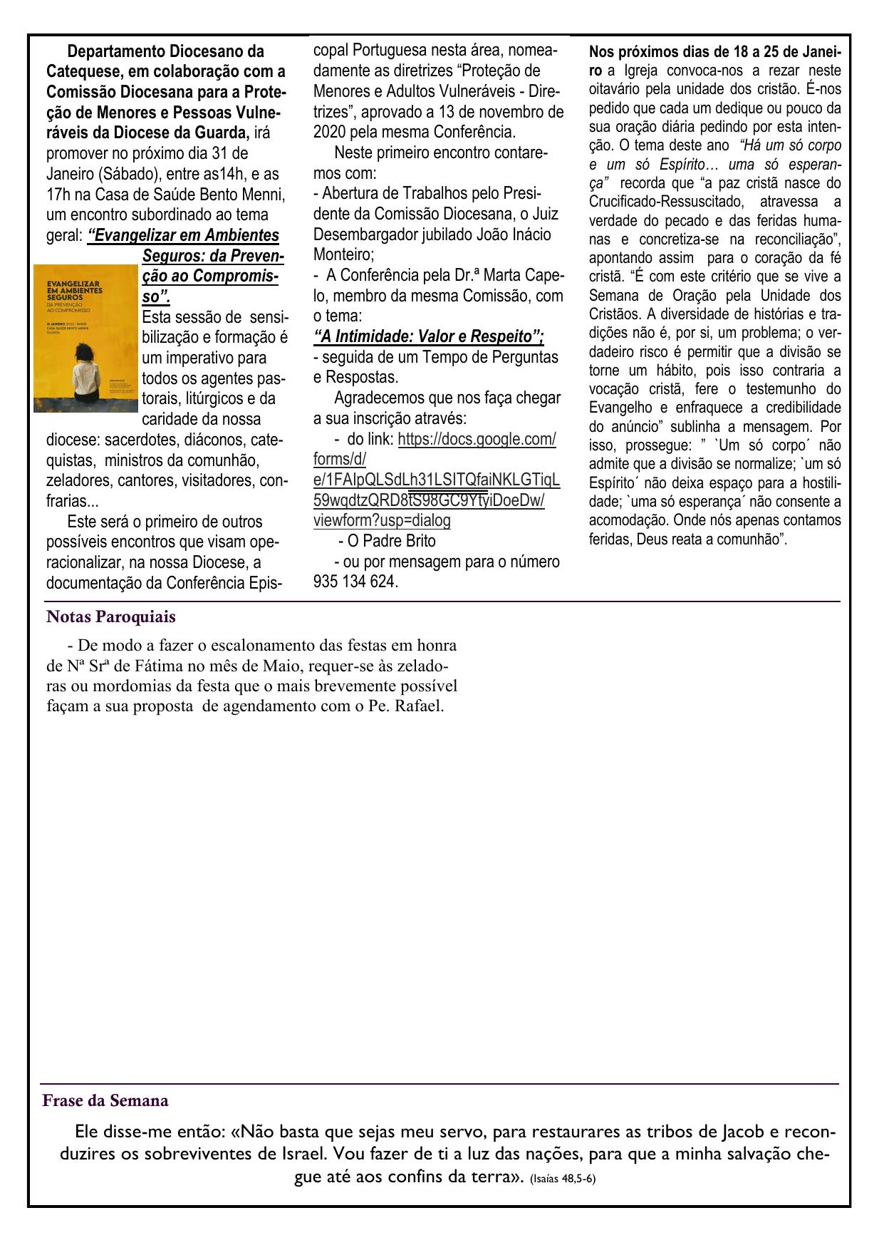 Agenda 19 a 25 | Janeiro 2026 Detalhes Categoria: Agenda Publicado em domingo, 18 janeiro 2026 09:32 Escrito por Paróquia de Santa Marinha Visualizações: 8 Seguinte