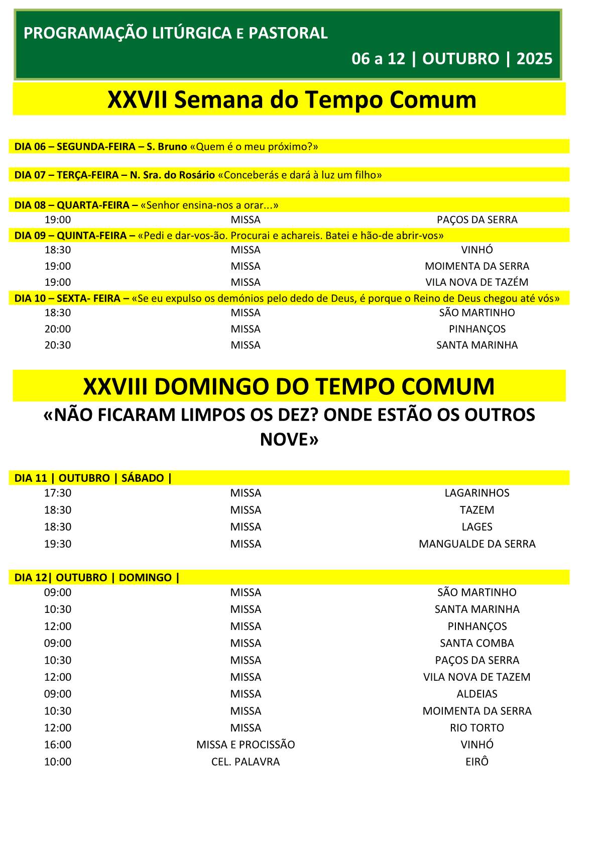 Agenda 06 a 12 | Outubro 2025 Detalhes Categoria: Agenda Publicado em segunda, 29 setembro 2025 22:57 Escrito por Paróquia de Santa Marinha Visualizações: 288 Anterior Seguinte
