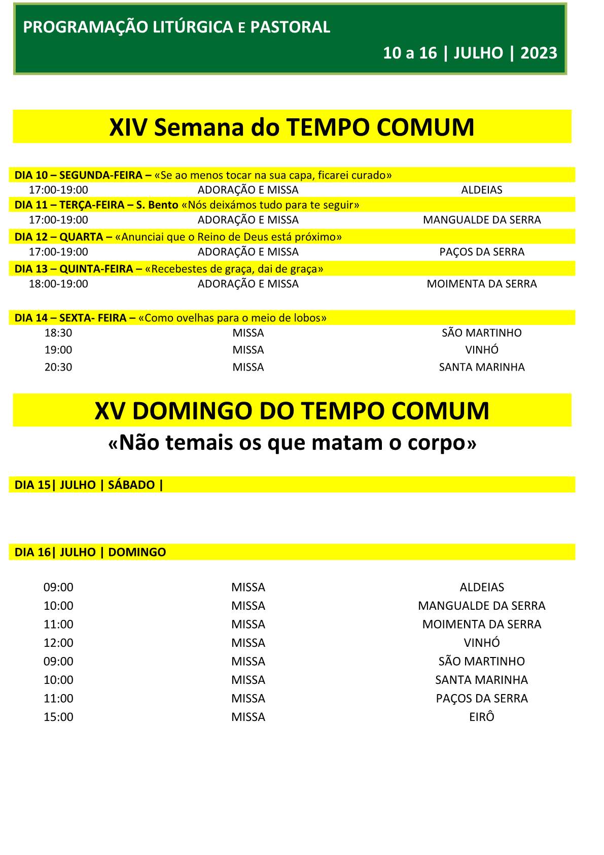 Agenda 10 a 16 | Julho 2023 Detalhes Categoria: Agenda Publicado em segunda, 10 julho 2023 23:04 Escrito por Paróquia de Santa Marinha Visualizações: 435 Anterior Seguinte