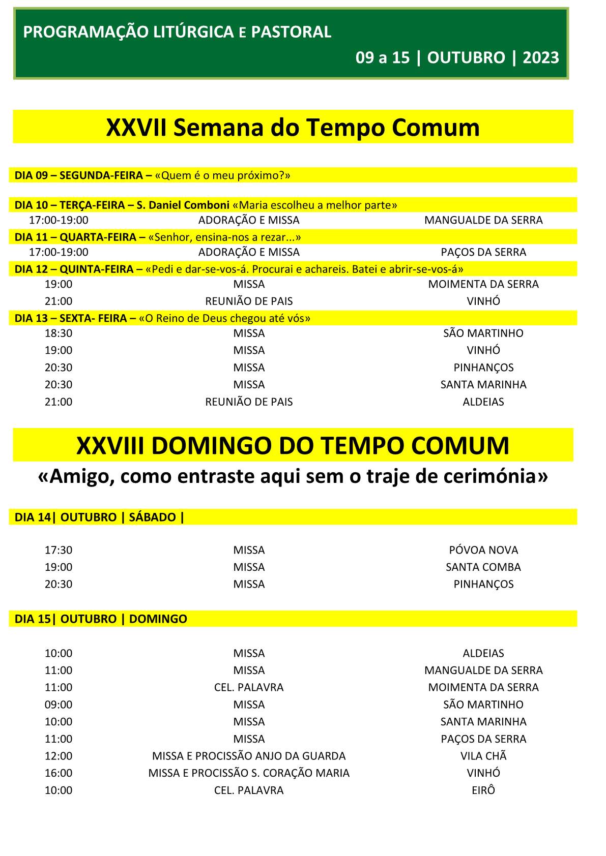 Agenda 09 a 15 | Outubro 2023 Detalhes Categoria: Agenda Publicado em segunda, 09 outubro 2023 09:30 Escrito por Paróquia de Santa Marinha Visualizações: 426 Anterior Seguinte