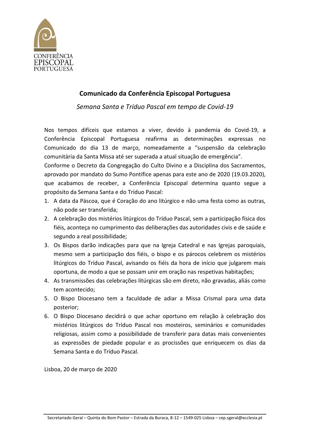 Os responsáveis aconselham “um espaço adequado para celebrar e rezar juntos com dignidade e recolhimento”, na casa de cada família.
