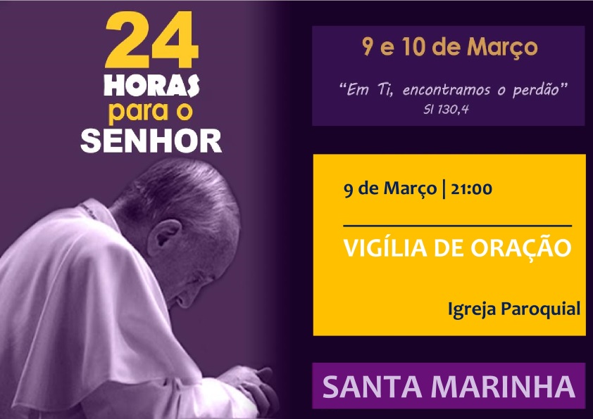 Na noite de Terça feira Santa, dia 27 de Março, realizar-se-á na paróquia de Santa Marinha uma Via-sacra que terá inicio às 21:00 na igreja paroquial e que percorrerá algumas ruas e espaços da comunidade. Para uma melhor preparação e participação neste momento de oração realizar-se-á um encontro de preparação na sexta-feira, dia 23 de Março, às 21:15, no salão da casa paroquial, com todos os interessados em desempenhar funções de leitores e portadores da cruz na via sacra da comunidade.