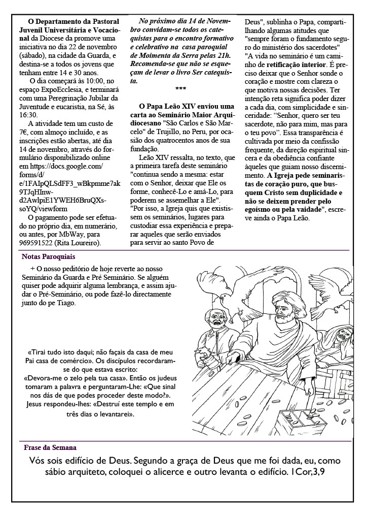 Agenda 10 a 16 | Novembro 2025 Detalhes Categoria: Agenda Publicado em sábado, 08 novembro 2025 19:29 Escrito por Paróquia de Santa Marinha Visualizações: 21 Seguinte
