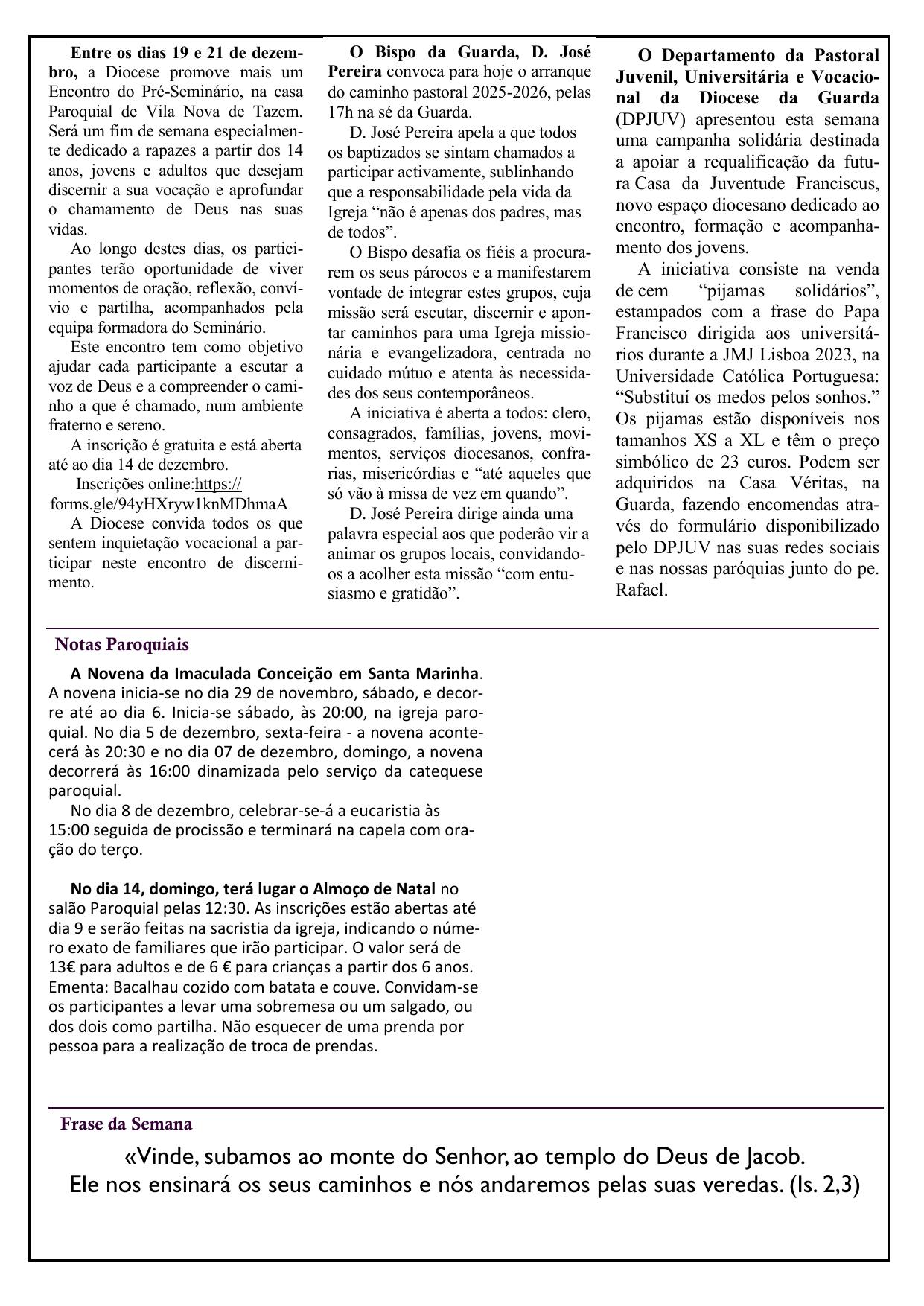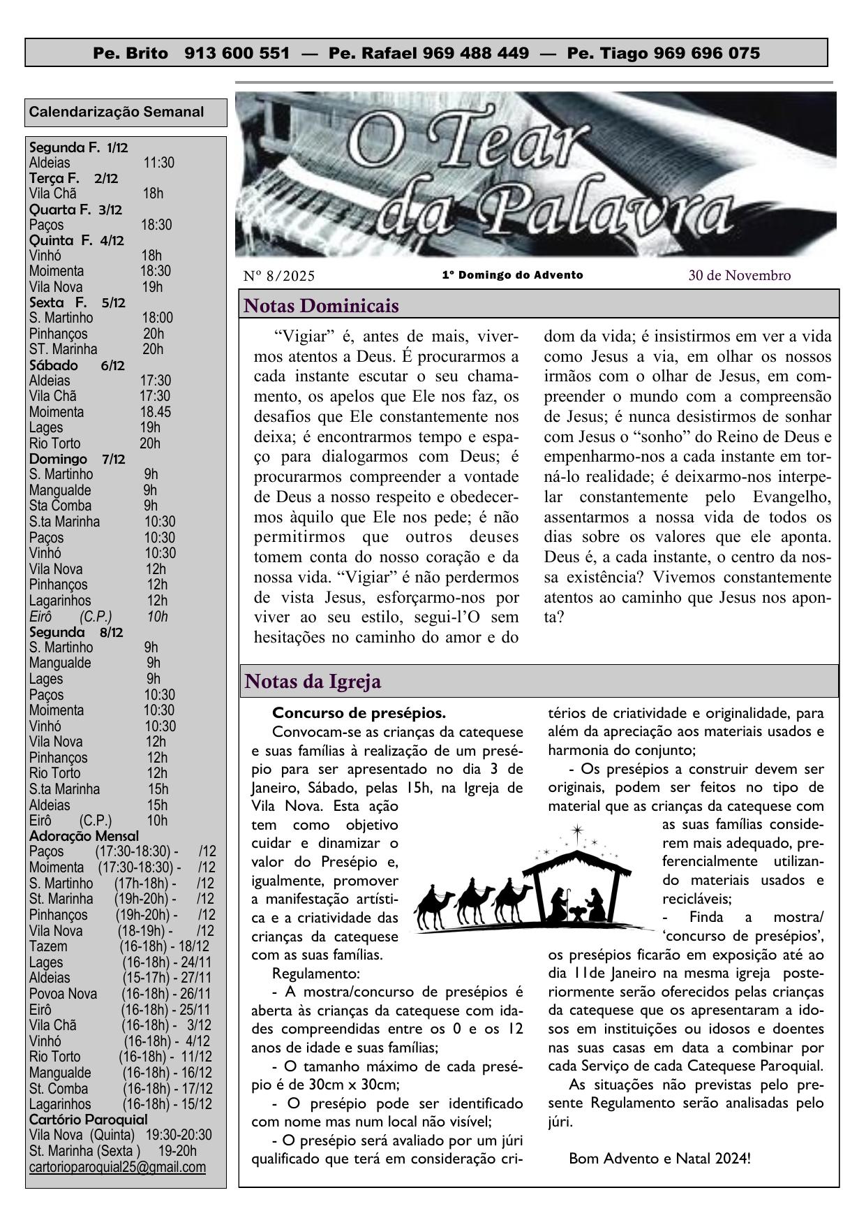 Agenda 01 a 08 | Dezembro 2025 Detalhes Categoria: Agenda Publicado em quinta, 27 novembro 2025 21:48 Escrito por Paróquia de Santa Marinha Visualizações: 21 Seguinte